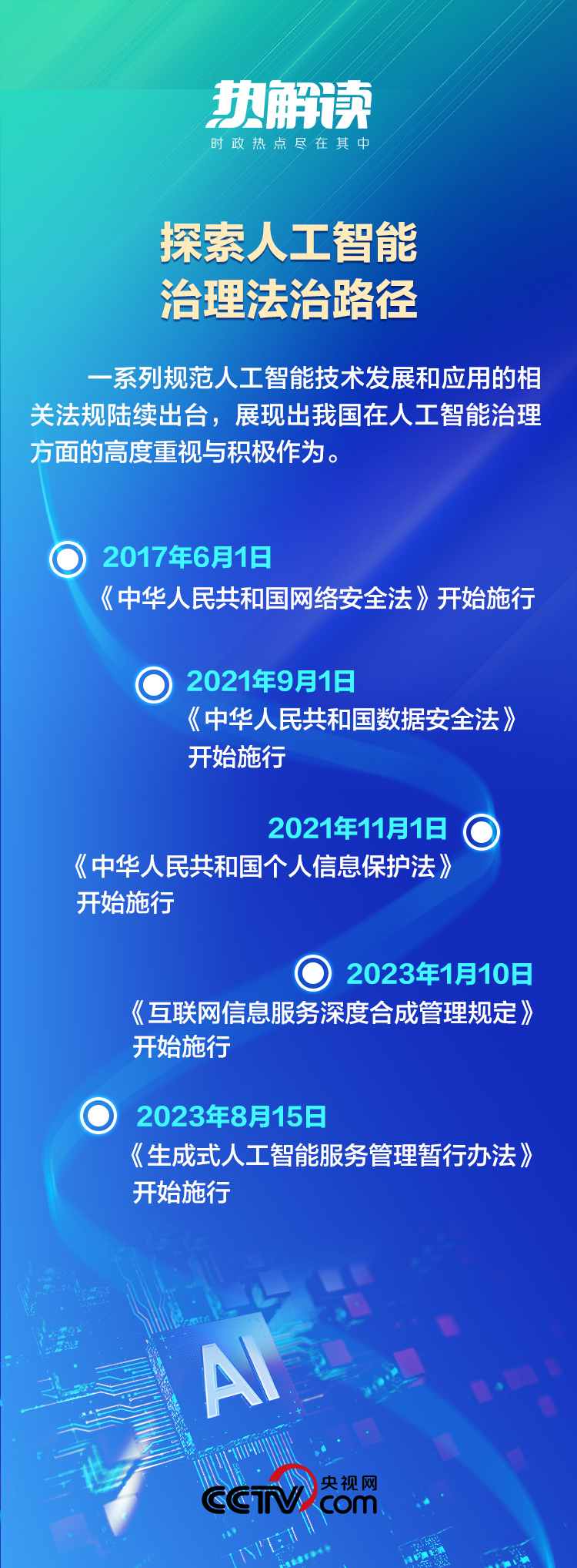 2023年10月,第三屆“一帶一路”國(guó)際合作高峰論壇開(kāi)幕,習(xí)主席宣布中方提出《全球人工智能治理倡議》。這一倡議堅(jiān)持“以人為本、智能向善”,為世界提供了基于人類(lèi)命運(yùn)共同體理念的人工智能治理新視角。