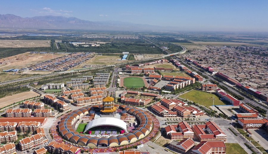 這是2022年9月7日拍攝的寧夏銀川市閩寧鎮(zhèn)(無(wú)人機(jī)照片)。新華社記者 馮開華 攝