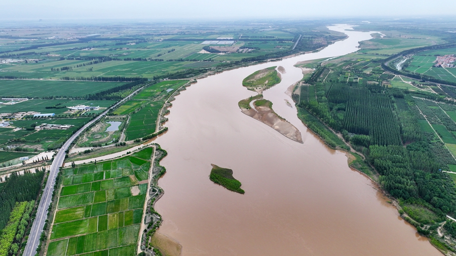 這是2024年6月13日拍攝的黃河寧夏段(無(wú)人機(jī)照片)。新華社記者 王鵬 攝