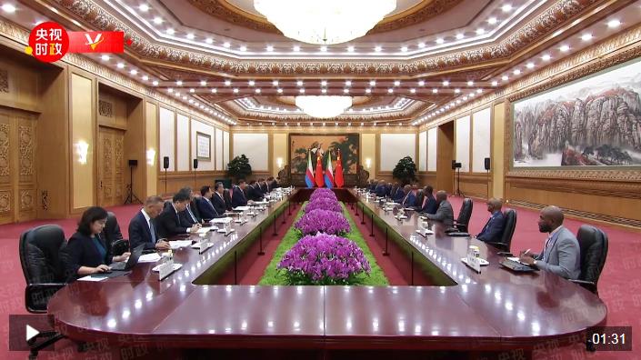 9月2日上午,國家主席習(xí)近平在北京人民大會(huì)堂會(huì)見來華出席中非合作論壇峰會(huì)的科摩羅總統(tǒng)阿扎利。