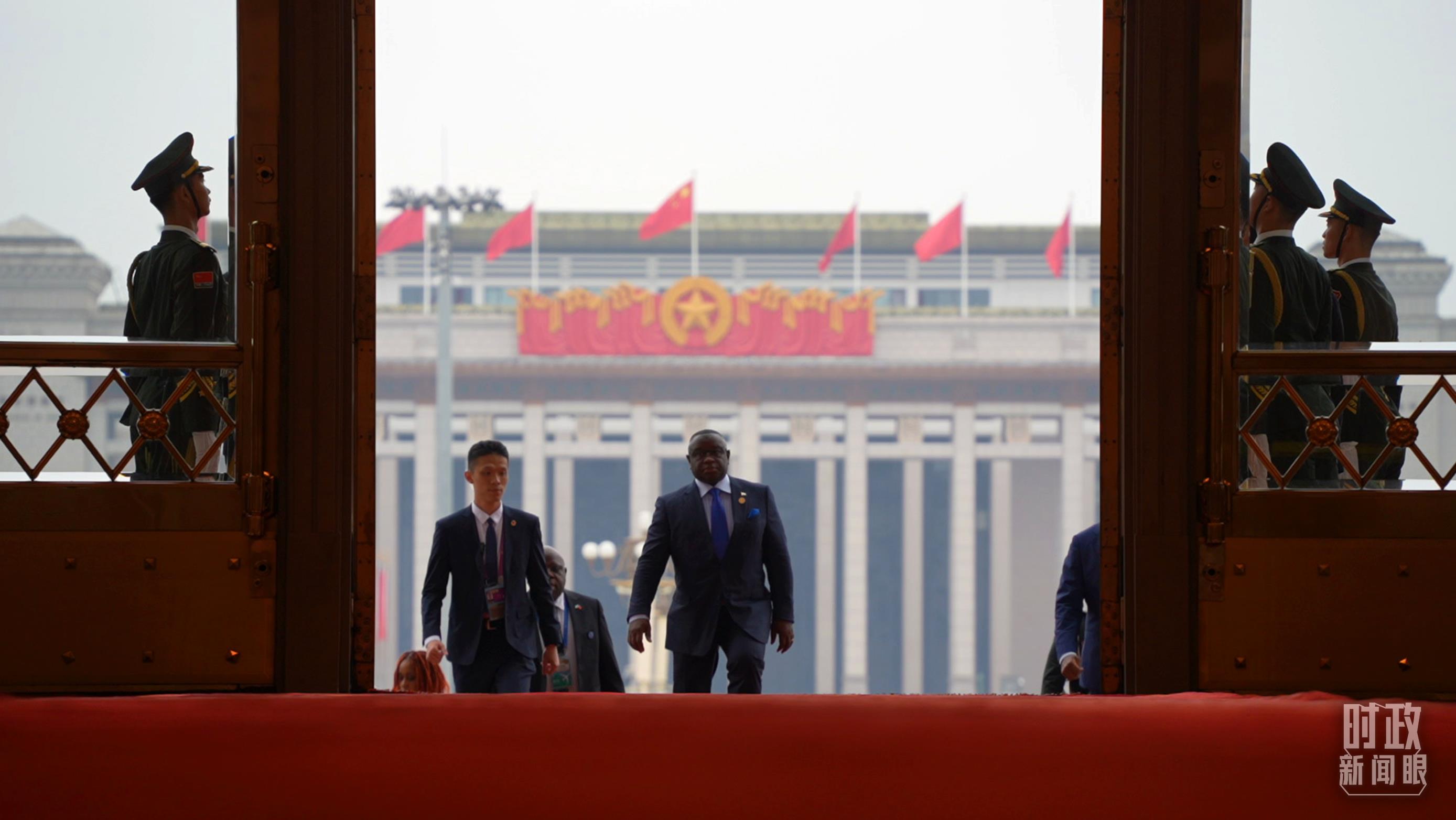 非洲國家領(lǐng)導(dǎo)人步入人民大會(huì)堂。(總臺(tái)央視記者趙怡彬拍攝)