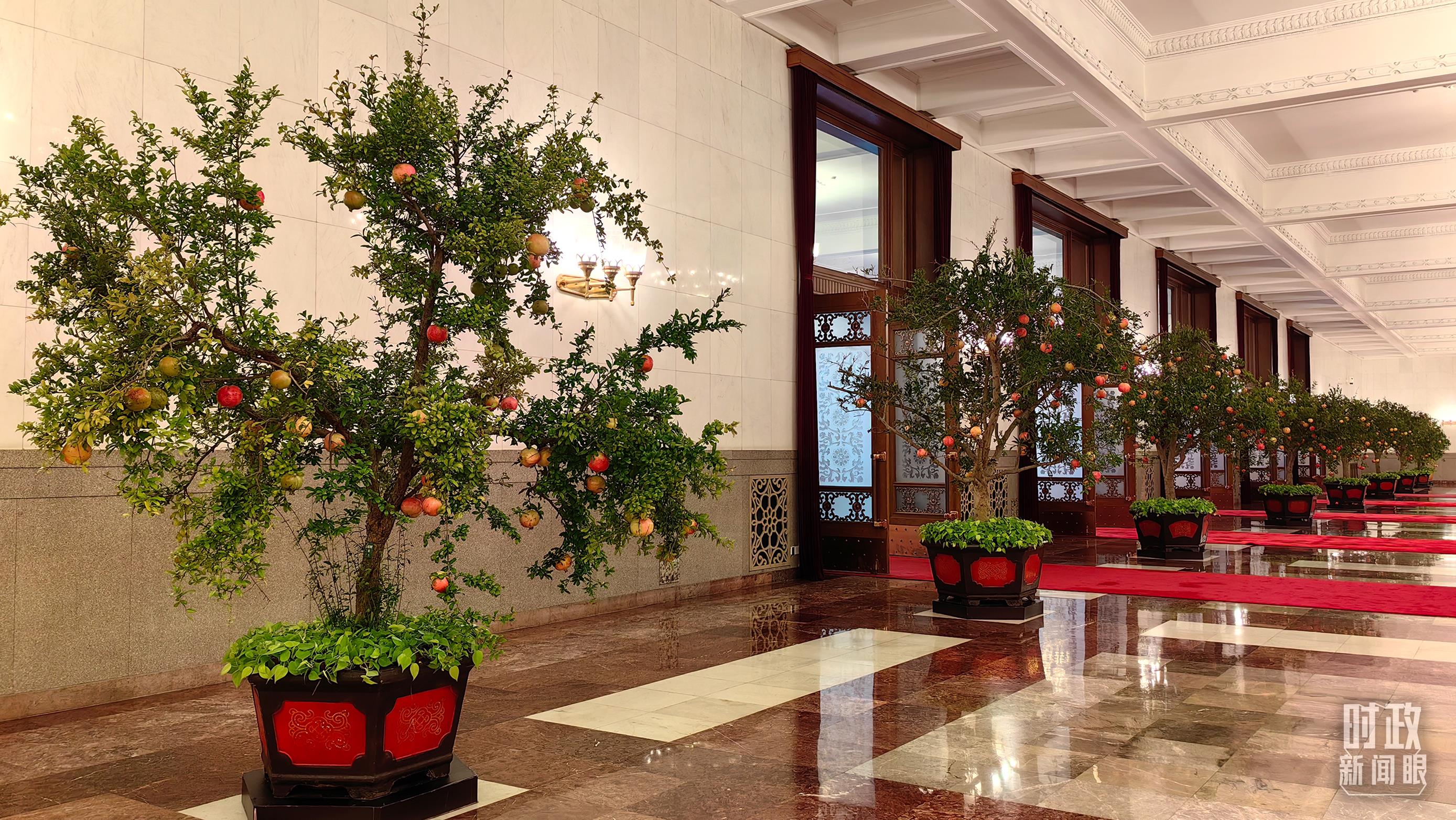 人民大會(huì)堂碩果累累的石榴盆栽。(總臺(tái)央視記者王曉東拍攝)