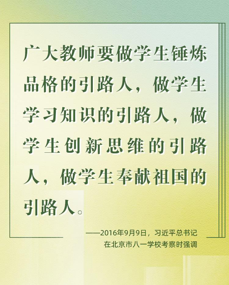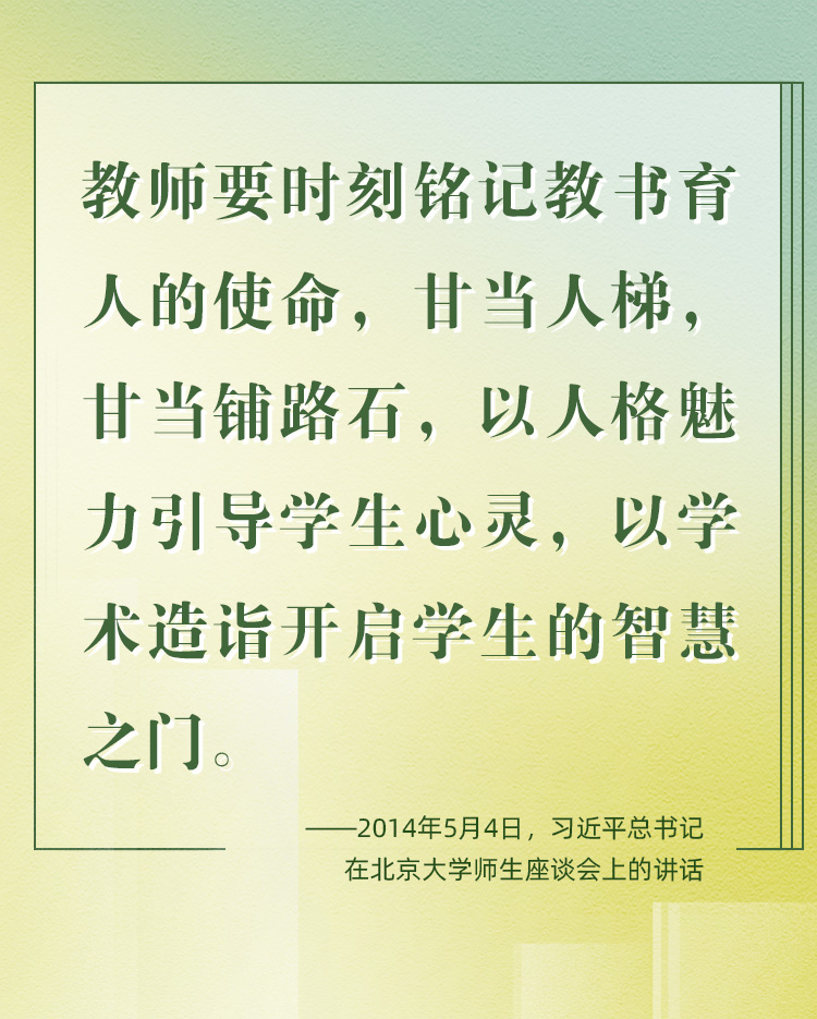 他們帶領(lǐng)學(xué)生前行,更新舊知、開掘新知、探索未知;他們肩負(fù)光榮使命,為黨育人、為國育才、為民育未來。守教育報(bào)國初心、擔(dān)立德樹人使命、圓民族復(fù)興之夢(mèng),建設(shè)社會(huì)主義現(xiàn)代化強(qiáng)國之路上,教育家精神自當(dāng)念茲在茲、代代傳承、光芒永綻。