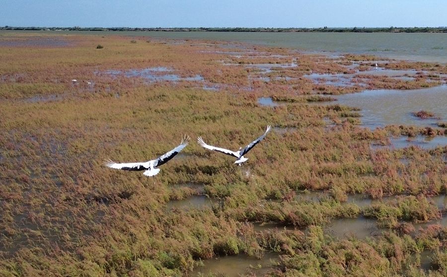 “我們這里是中國東方白鸛之鄉(xiāng)、黑嘴鷗繁殖地,去年以來還新發(fā)現(xiàn)了火烈鳥、白鵜鶘、勺嘴鷸?!碑?dāng)?shù)刎?fù)責(zé)同志介紹,這些年通過退耕還濕、退養(yǎng)還灘,推進(jìn)濕地修復(fù),生態(tài)環(huán)境越來越好。