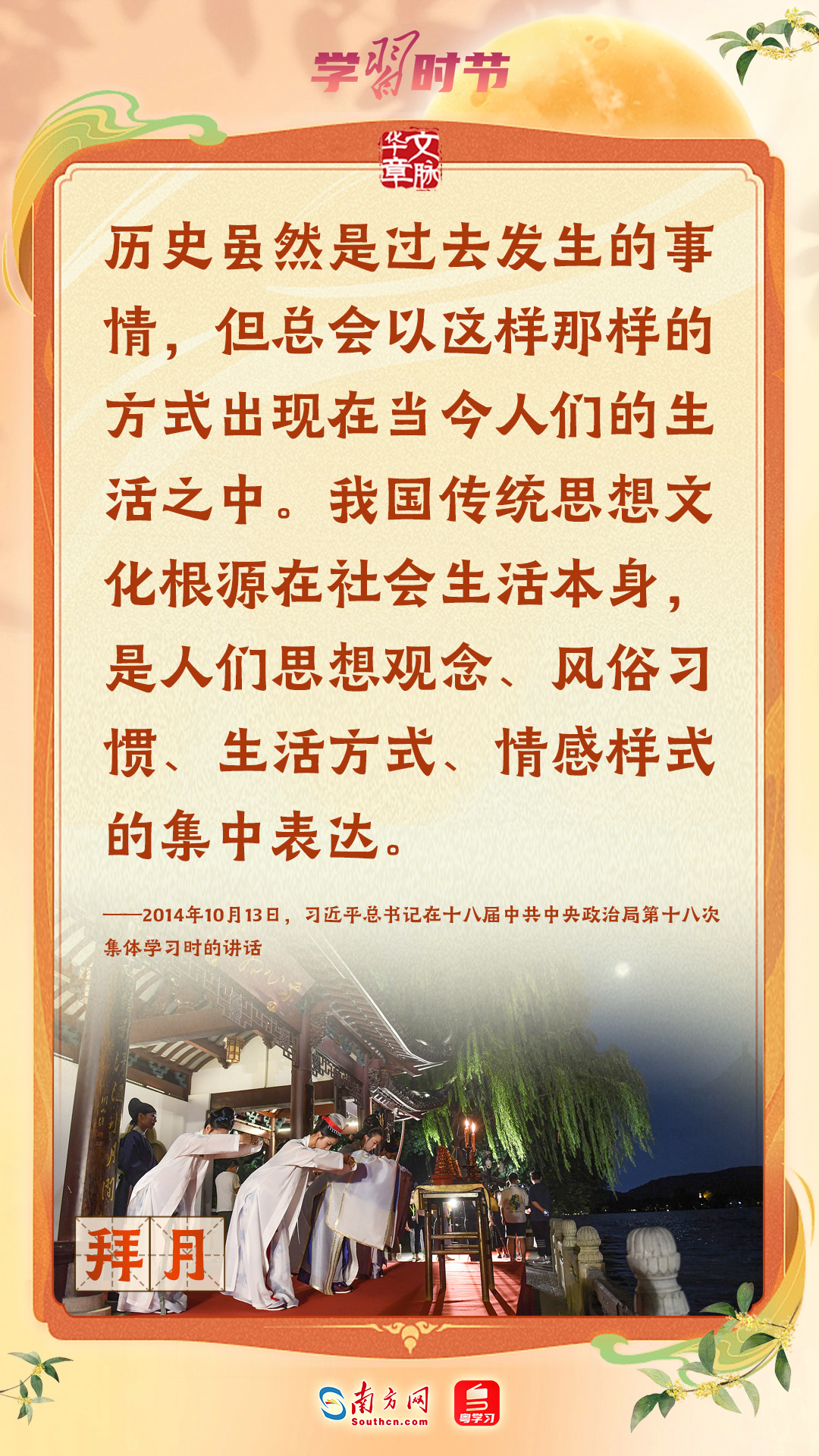 品月餅、賞月拜月、看花燈、飲桂花酒……作為我國重要的傳統(tǒng)節(jié)日,中秋節(jié)蘊(yùn)含著中華優(yōu)秀傳統(tǒng)文化的精髓。習(xí)近平總書記一直以來高度重視傳統(tǒng)節(jié)日和傳統(tǒng)文化,曾多次強(qiáng)調(diào)要發(fā)揮其寶貴價(jià)值和獨(dú)特作用。