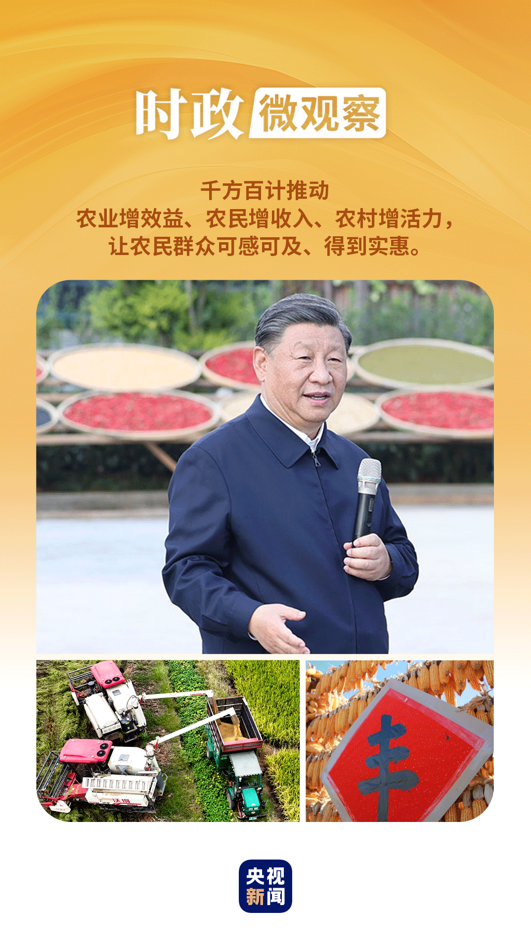 在第七個(gè)“中國(guó)農(nóng)民豐收節(jié)”到來(lái)之際,習(xí)近平總書(shū)記代表黨中央,向全國(guó)廣大農(nóng)民和工作在“三農(nóng)”戰(zhàn)線上的同志們致以節(jié)日祝賀和誠(chéng)摯問(wèn)候,對(duì)于堅(jiān)持不懈夯實(shí)農(nóng)業(yè)基礎(chǔ),推進(jìn)鄉(xiāng)村全面振興提出殷切期望和要求——