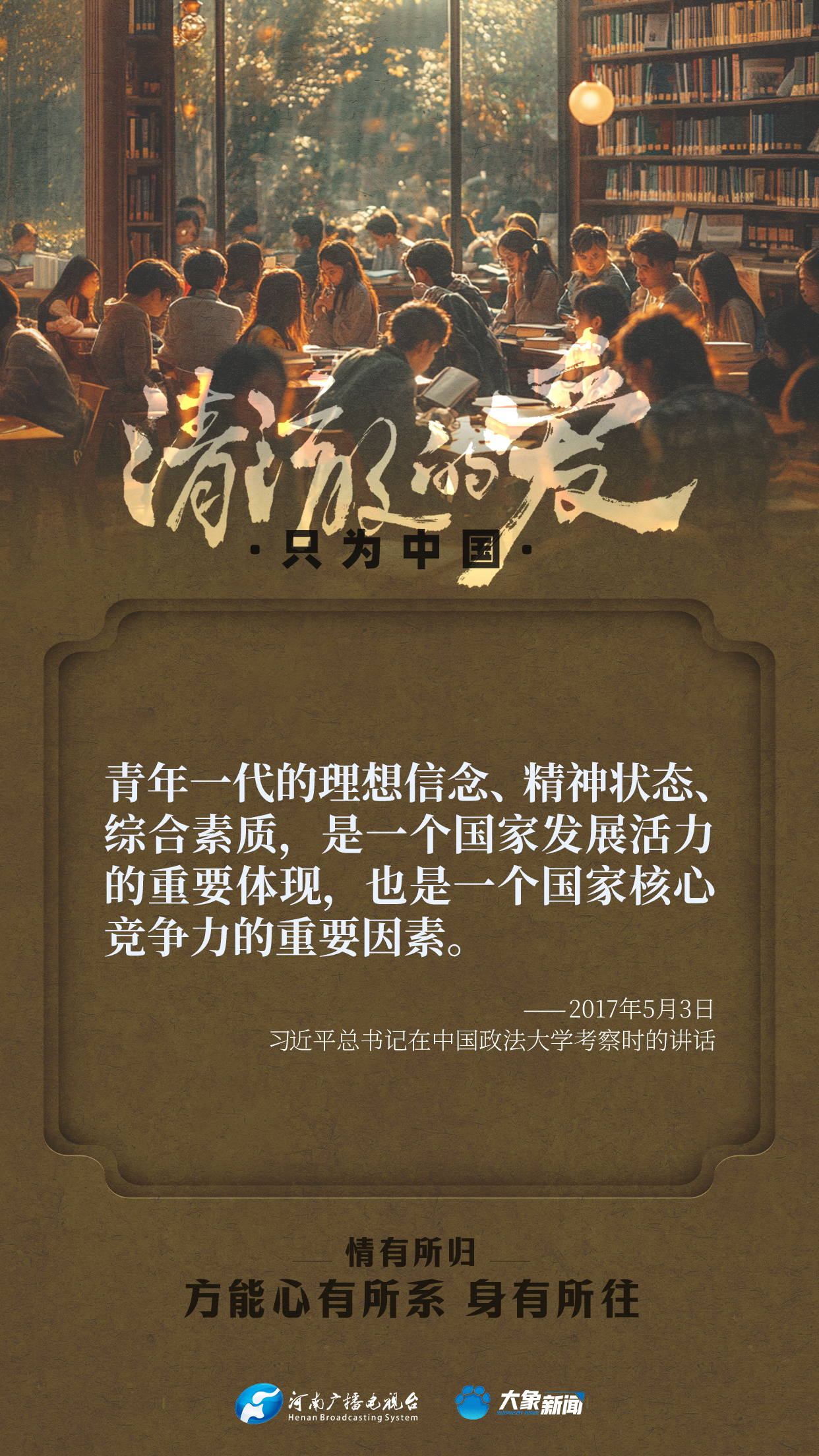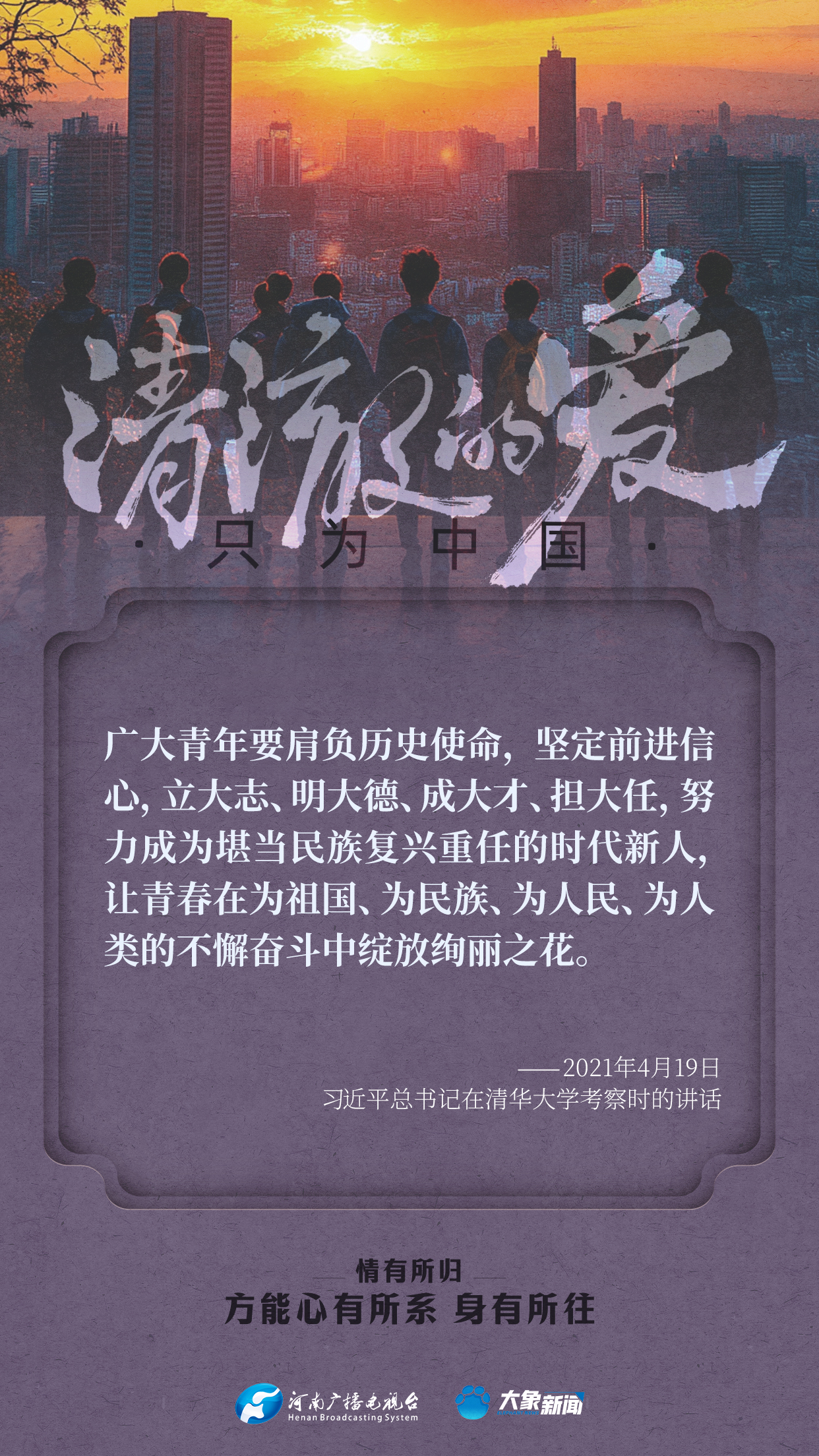 習近平總書記對廣大青年寄予厚望。黨的十八大以來,他多次來到青年中間,同大家談人生、話理想,鼓勵青年人心系祖國,志存高遠,腳踏實地,在奮斗中創(chuàng)造精彩人生,為祖國和人民貢獻青春和力量。