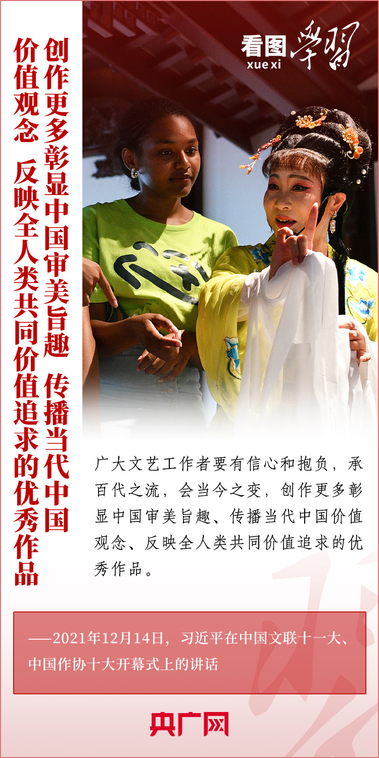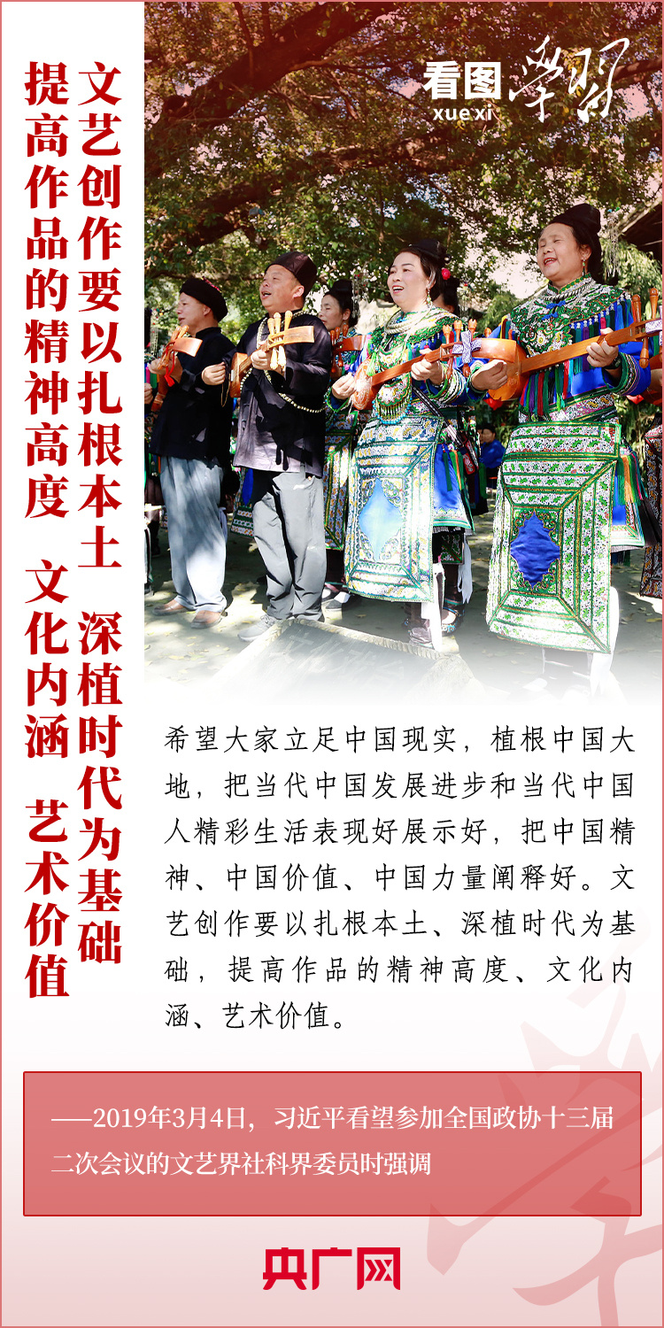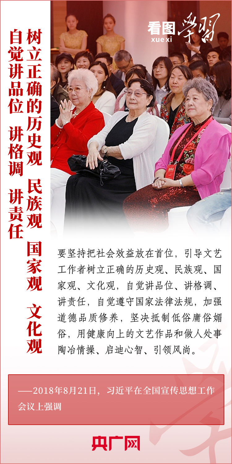 十年來,我國廣大文藝工作者深入生活、扎根人民,創(chuàng)作出一大批彰顯中國精神、體現(xiàn)人文關(guān)懷、富有藝術(shù)創(chuàng)新力的優(yōu)質(zhì)文藝作品,努力用豐富多彩的文藝精品滿足人們對精神文化生活的需求。如何創(chuàng)作出更多無愧于時代、無愧于人民的優(yōu)秀作品?讓我們一起深刻領(lǐng)悟總書記的“文藝觀”。