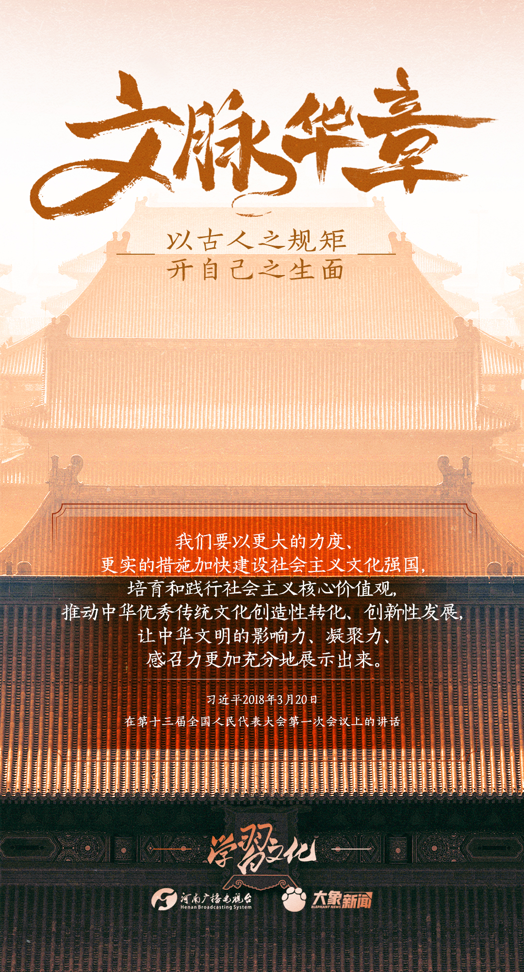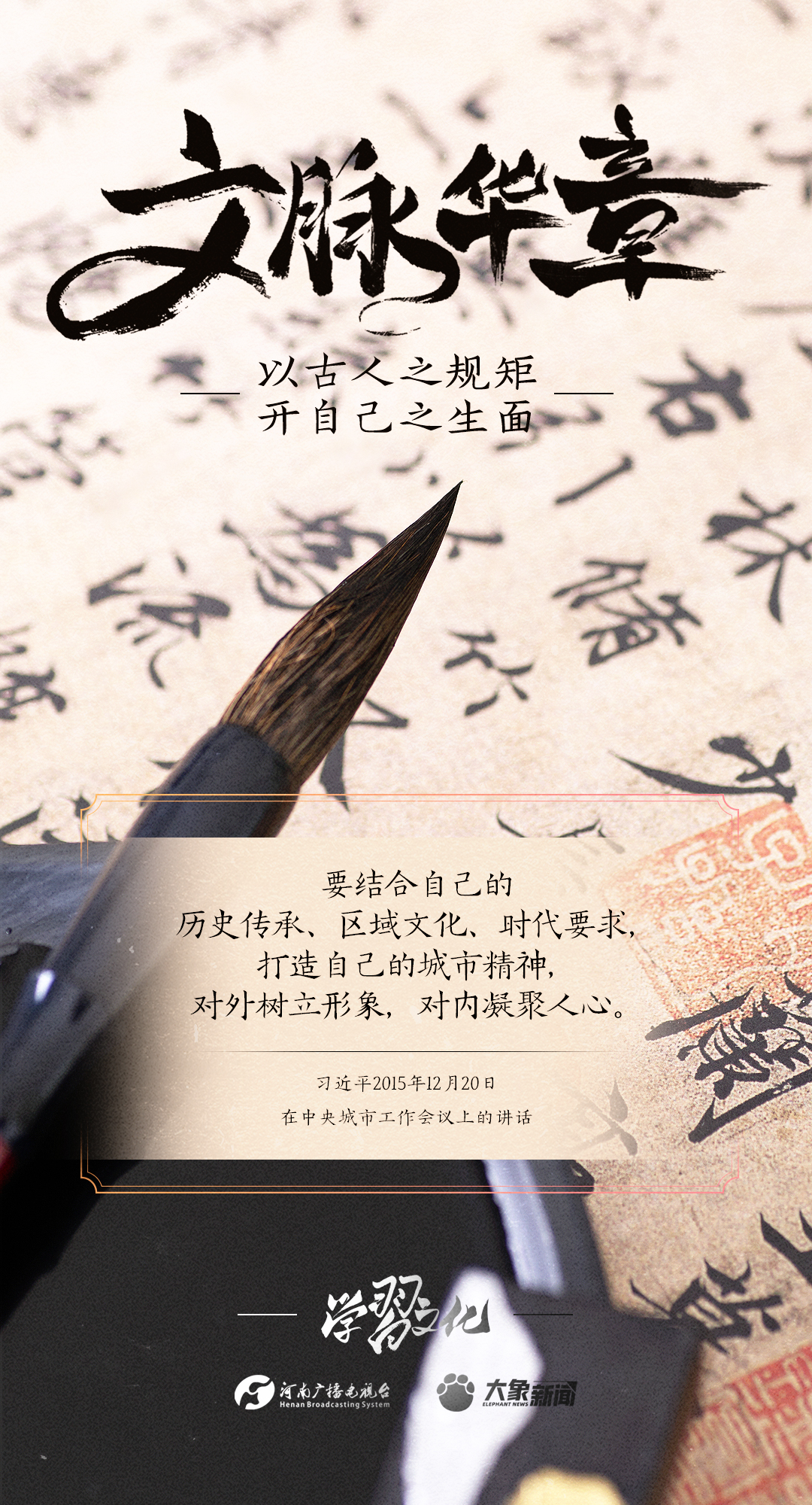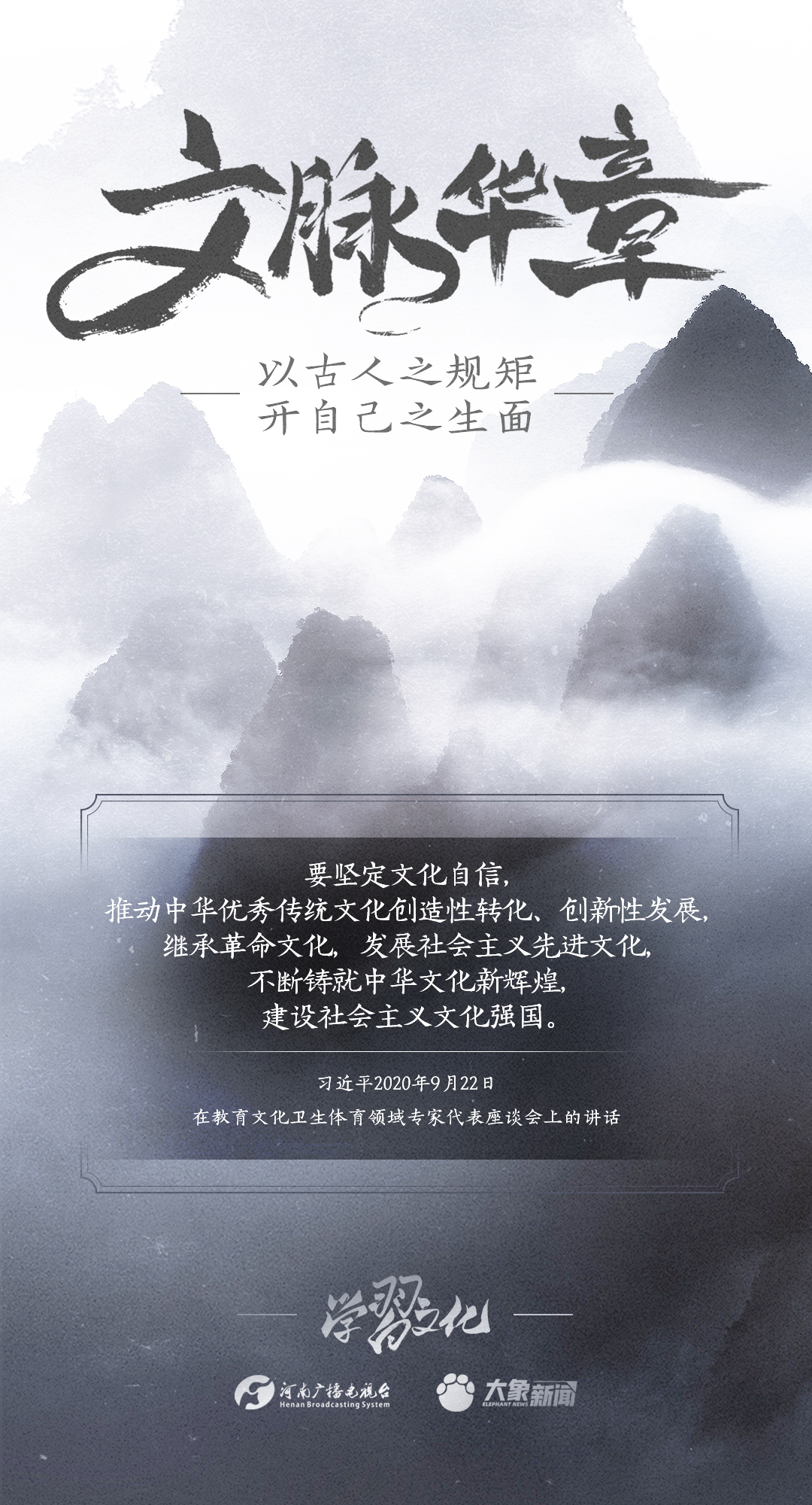 2014年10月15日,習(xí)近平總書記在文藝工作座談會上的重要講話指出:傳承中華文化,絕不是簡單復(fù)古,也不是盲目排外,而是古為今用、洋為中用,辯證取舍、推陳出新,摒棄消極因素,繼承積極思想,“以古人之規(guī)矩,開自己之生面”,實(shí)現(xiàn)中華文化的創(chuàng)造性轉(zhuǎn)化和創(chuàng)新性發(fā)展。