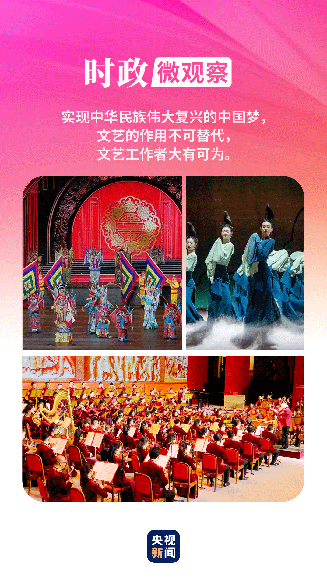 10年來,廣大文藝工作者牢記囑托,積極投身新時代中國特色社會主義偉大實踐,傾情服務(wù)人民,傾心創(chuàng)作精品,奏響一曲曲蕩氣回腸的時代之聲、愛國之聲、人民之聲,為中華民族偉大復(fù)興凝聚起磅礴精神偉力。