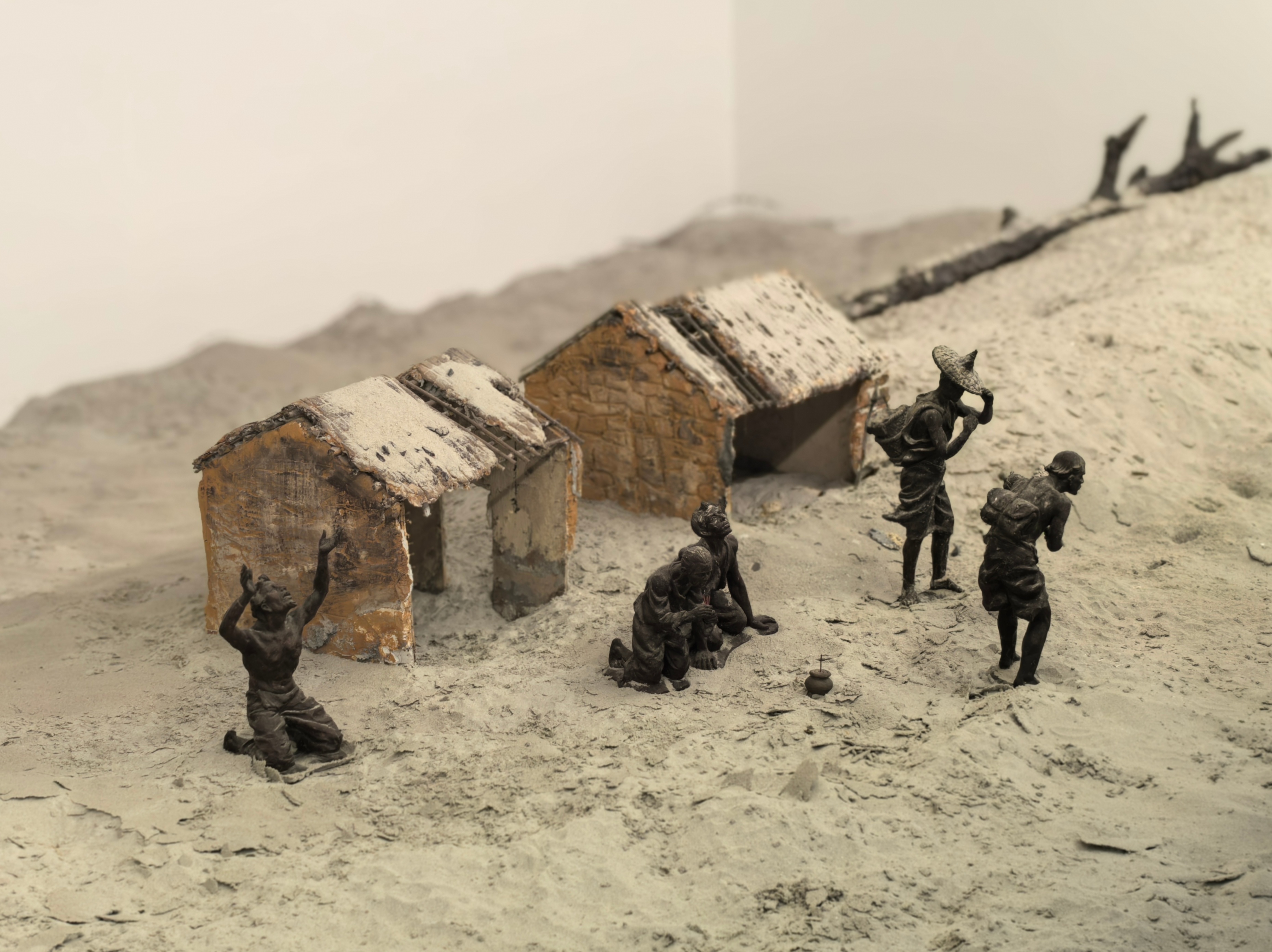 谷文昌紀(jì)念館里展示的當(dāng)年?yáng)|山人民飽受風(fēng)沙災(zāi)害之苦的情景。(總臺(tái)央廣記者潘毅拍攝)