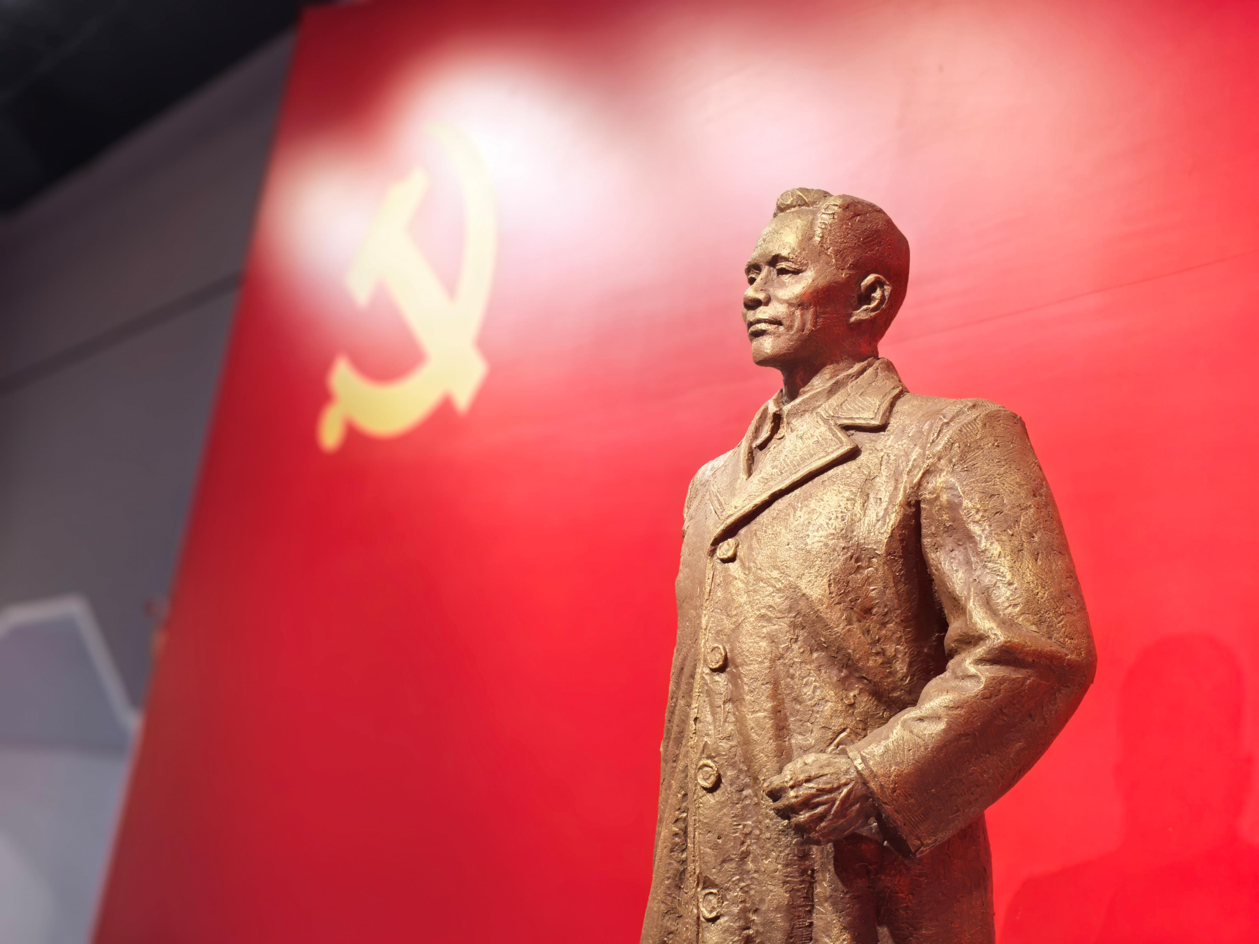 紀(jì)念館里的谷文昌雕像。(總臺(tái)央廣記者潘毅拍攝)