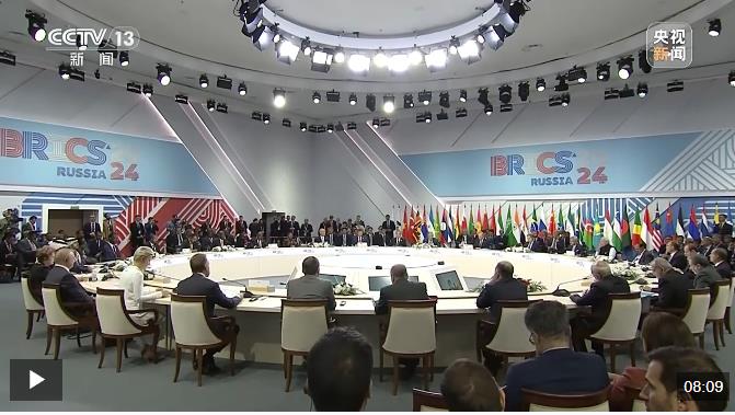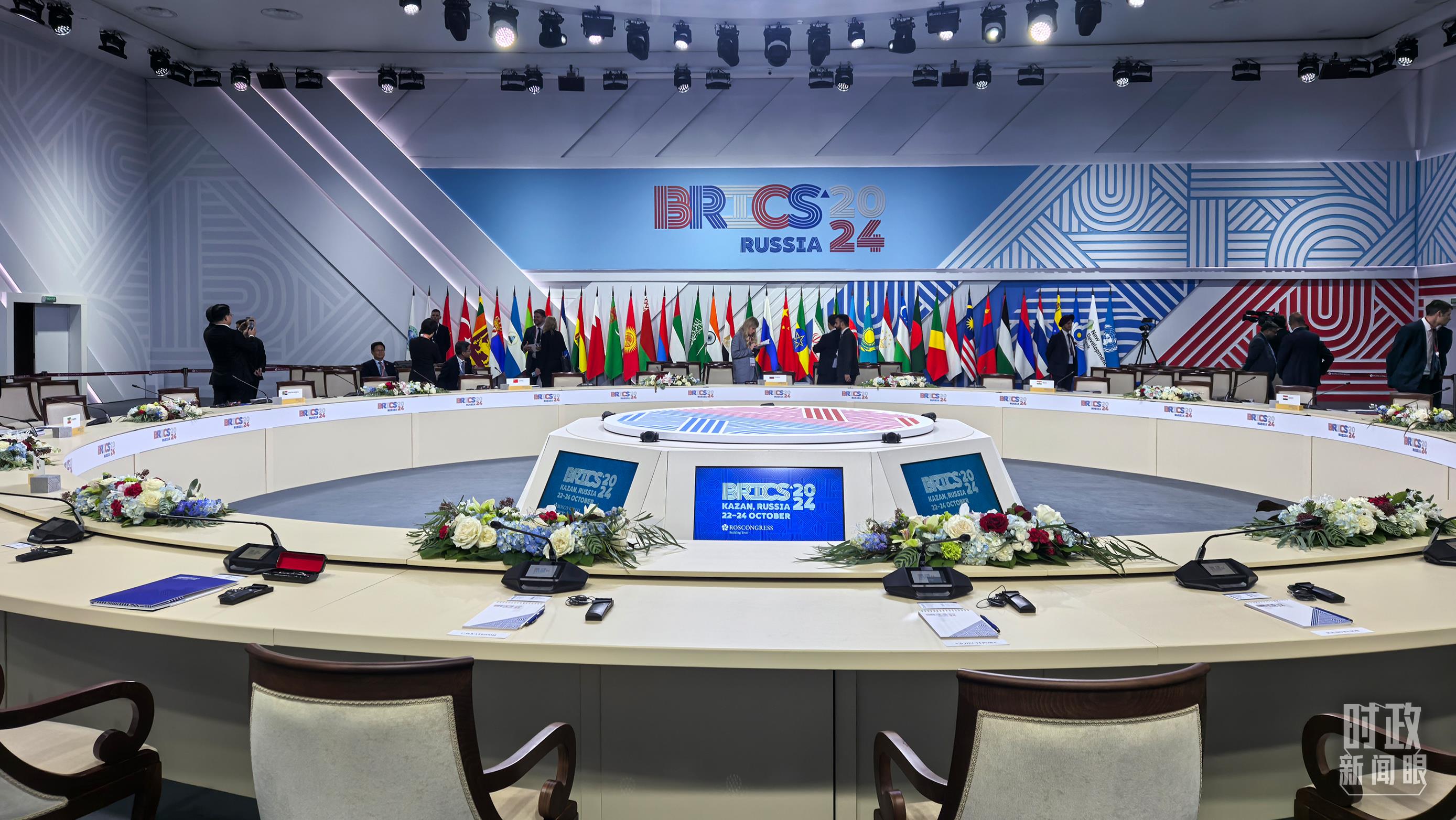 金磚國家領(lǐng)導人大范圍會議開始前。(總臺央視記者程鋮拍攝)