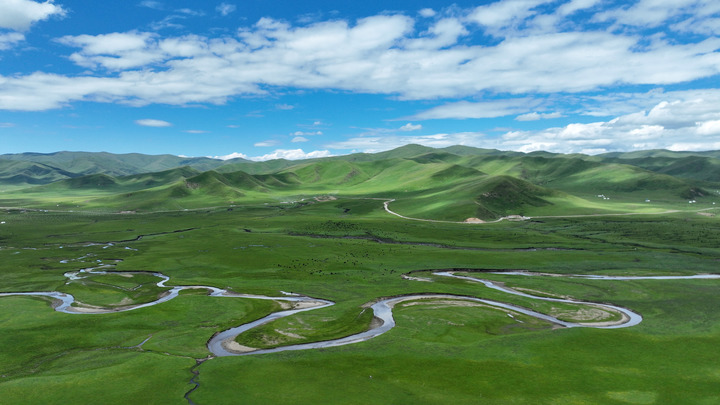 這是2023年7月6日拍攝的甘肅省甘南藏族自治州瑪曲縣阿萬(wàn)倉(cāng)濕地景色(無(wú)人機(jī)照片)。瑪曲縣是黃河上游重要的水源涵養(yǎng)區(qū)和生態(tài)功能區(qū),被稱(chēng)為“黃河之腎”。多年來(lái),甘肅省實(shí)施退牧還草、退化草原生態(tài)修復(fù)等治理工程,草原生態(tài)環(huán)境明顯改善。