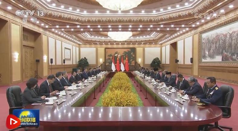 11月9日下午,國家主席習(xí)近平在北京人民大會堂同來華進行國事訪問的印度尼西亞總統(tǒng)普拉博沃舉行會談。
