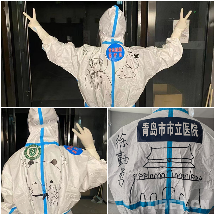 中國(guó)西藏網(wǎng)訊 青島援藏醫(yī)療隊(duì)自8月17日進(jìn)藏以來(lái), 隊(duì)員們無(wú)論工作多累多難、高原反應(yīng)有多難受,都沒(méi)有一句怨言,依然堅(jiān)持在西藏自治區(qū)日喀則市戰(zhàn)“疫”一線。工作之余,來(lái)自青島市市立醫(yī)院本部ICU的鐘翔宇發(fā)揮出了她的“隱藏技能”——在醫(yī)療隊(duì)的“大白”身上畫上漫畫,用表情包背到身上的方式給隊(duì)友們加油鼓勁兒。身著漫畫“戰(zhàn)袍”的隊(duì)員們斗志昂揚(yáng),朝氣蓬勃,互相鼓勵(lì)幫助,完成了一天天的工作任務(wù)。而這些古靈精怪的漫畫,在戰(zhàn)“疫”一線也成了一道靚麗的風(fēng)景線。(中國(guó)西藏網(wǎng) 記者/次旦拉姆 由桑珠孜區(qū)融媒體中心供稿)