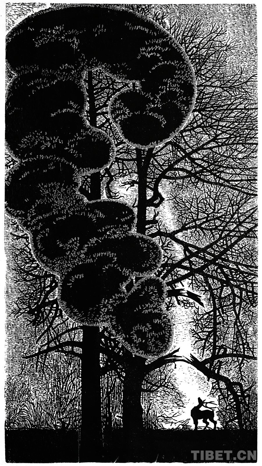 1975年籌辦《西藏文藝》,自治區(qū)宣傳部抽調(diào)包括我在內(nèi)的幾個人,其中有羅志龍、央金、張蜀華等。我既做美編也編文字稿。從《西藏文藝》改為《西藏文學(xué)》,請郭老(沫若)題寫封面;從季刊到雙月刊到月刊,我一直當(dāng)了15年編輯,主要從事美編。就我的想法來說,西藏沒有專業(yè)的美術(shù)刊物,《西藏文學(xué)》應(yīng)當(dāng)為培養(yǎng)美術(shù)人才提供一個園地。從封面和插圖的組稿、編稿、刊用,都比較注意發(fā)現(xiàn)和培養(yǎng)美術(shù)新人。在我所組織的美術(shù)作品中,后來獲得國家級金牌獎、二等獎和優(yōu)秀獎的作品各一幅,還有一些本區(qū)大獎。平鋪直敘地說,美編工作對我個人而言也很有意義,意義在于可以為文學(xué)作品畫插圖。我對美術(shù)的興趣正是從插圖開始的。過去接觸好的文學(xué)作品往往是從插圖看起。插圖應(yīng)是一個單獨的門類,所要求的基本功和其他畫種一樣,同時另有它自身的要求。好的插圖有獨立欣賞的價值,具有構(gòu)思的深度和形式上的完整。這樣的例子太多太多,就不去說它了。