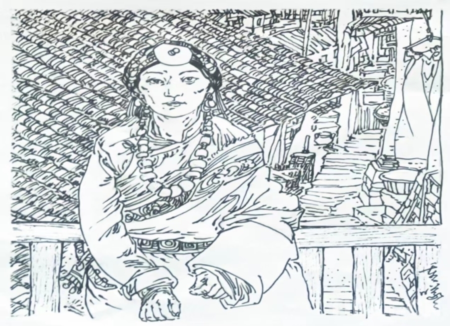 舊時康定鍋莊女(四川民族學(xué)院郭重曦繪)