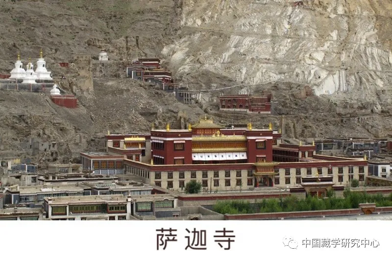 薩迦派,“薩迦”藏語意為“灰白色的土地”,同時因該派寺院圍墻涂有象征文殊、觀音、金剛手菩薩的紅、白、藍三色花條而被俗稱為“花教”。1073年,后藏的昆·貢卻杰布(1034-1102)在薩迦地方建立薩迦寺,從此逐漸形成薩迦派。該派獨特的密法傳承為道果教授。