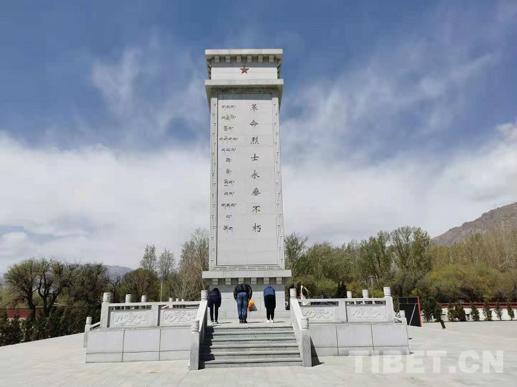 當日天朗氣清,中國西藏信息中心記者一行進入陵園,首先映入眼簾的就是莊嚴肅穆的紀念碑,上面鐫刻著張國華同志的題詞,“革命烈士永垂不朽”,令人肅然起敬。一行人緩步走向紀念碑,為烈士們敬獻鮮花,向革命烈士鞠躬。隨后,繞行紀念碑、陵墓區(qū),瞻仰烈士亭、英雄墻、烈士紀念館等。
