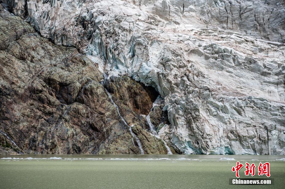 約雄冰川位于西藏自治區(qū)那曲市巴青縣境內,從空中俯瞰,巨大的冰川宛若一條巨龍,從6328米高的布加雪山峰頂傾瀉奔下,形成懸冰川體,蔚為壯觀。圖為約雄冰川融水形成的約雄措。 何蓬磊 攝