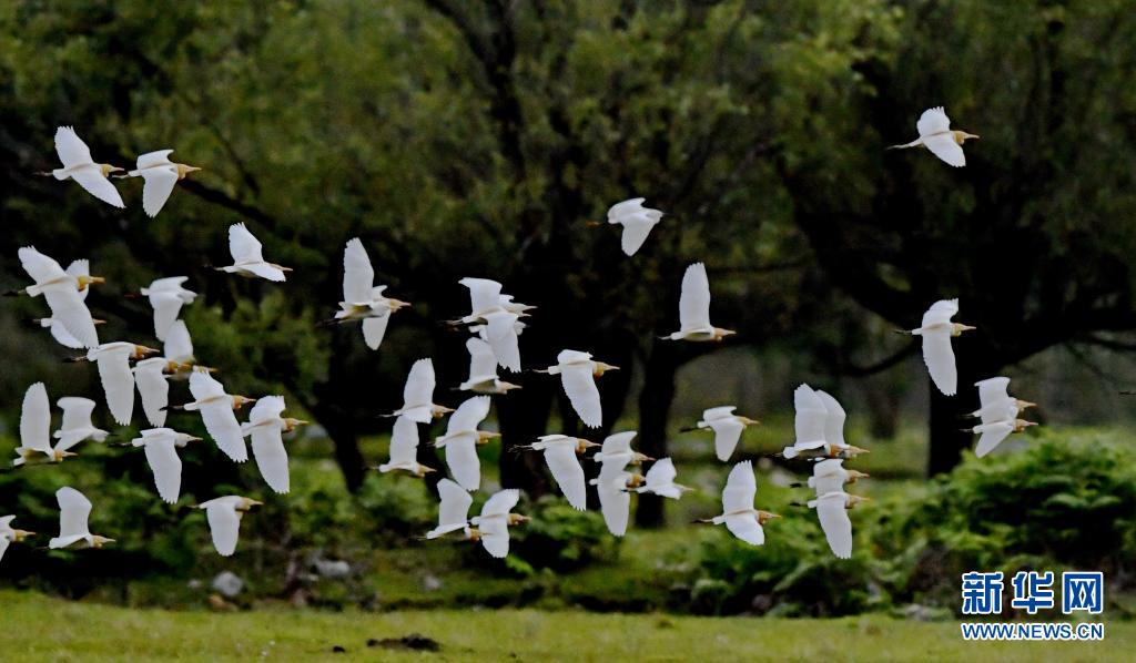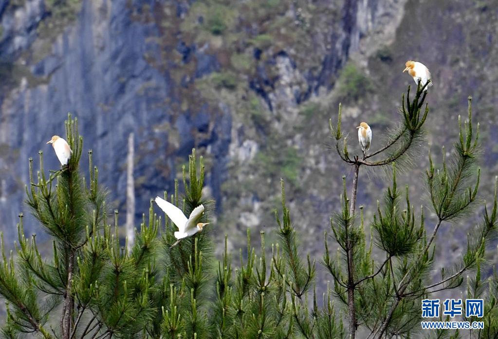 牛背鷺在易貢國(guó)家地質(zhì)公園棲息(5月22日攝)。新華社記者 張汝鋒 攝