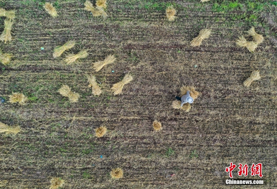 9月8日,西藏自治區(qū)拉薩市達孜區(qū)境內(nèi)的農(nóng)民在搶收青稞。金秋時節(jié),拉薩河谷一帶青稞成熟,農(nóng)民在青稞田忙碌,一片繁忙景象。(無人機照片) 中新社記者 貢嘎來松 攝