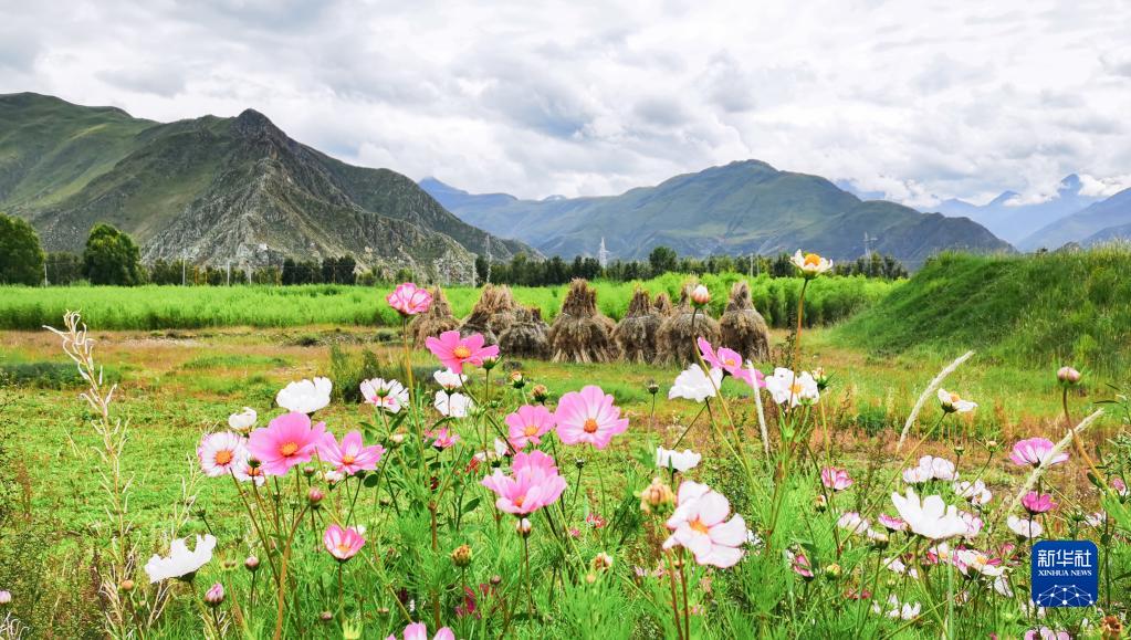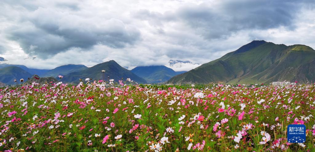 拉薩市達孜區(qū)拉薩河畔的鮮花(9月5日攝)。新華社記者 沈虹冰 攝