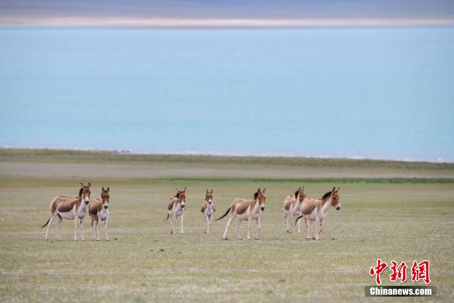 7月16日,西藏那曲羌塘草原上的藏野驢。羌塘草原位于西藏北部,是野生動物的樂園。 中新社記者 貢嘎來松 攝