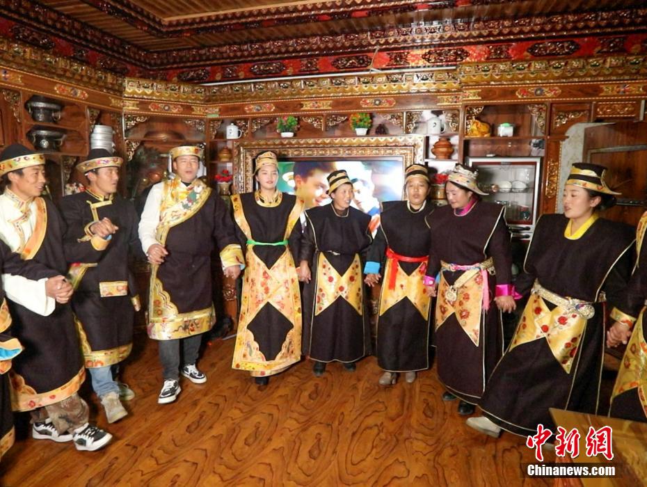 11月24日恰逢藏歷十月初一,西藏林芝迎來(lái)2023年工布新年,這是西藏最早的新年。工布新年以其悠久的歷史、鮮明的特色、豐富的內(nèi)涵,于2006年被列入第一批西藏自治區(qū)非物質(zhì)文化遺產(chǎn)保護(hù)名錄。圖為村民身著節(jié)日盛裝過(guò)年。 德吉 攝