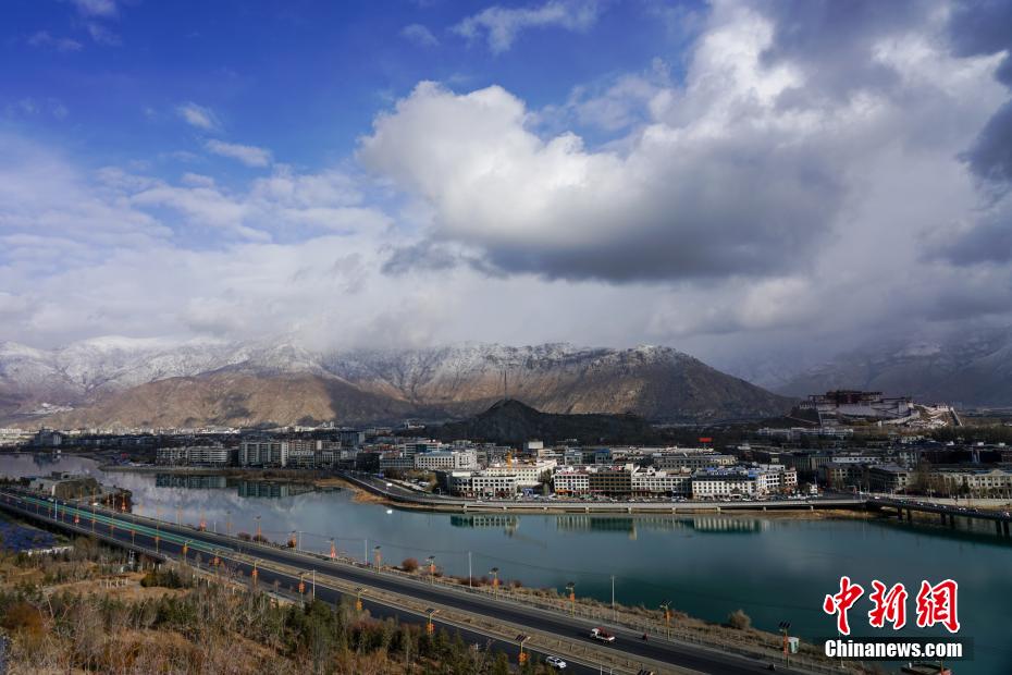 2月26日至27日,海拔3600多米的高原古城拉薩再次迎來降雪天氣,拉薩河兩岸延綿的山體猶如披上了一層白紗,一派高原特色城市風光,景色秀麗。布達拉宮觀景臺、拉薩南山公園等地吸引了不少旅游攝影愛好者“打卡”古城雪景。圖為春雪過后的拉薩。
