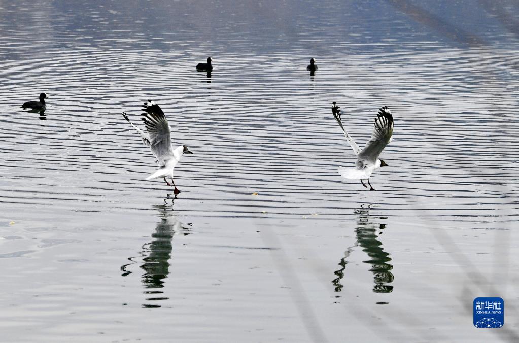 棕頭鷗在拉魯濕地上空盤旋(5月6日攝)。新華社記者 張汝鋒 攝