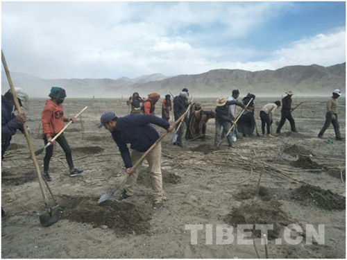 中國西藏網(wǎng)訊 仲春初四日,春色正中分。春天的拉薩河谷,萬物復(fù)蘇。在全民義務(wù)植樹的三月時(shí)節(jié),拉孜縣扎西崗鄉(xiāng)吉榮村路旁的沙地上,吉榮村駐村工作隊(duì)正在組織村民進(jìn)行義務(wù)植樹,轟鳴的機(jī)器聲和歡快的勞動號子,驚醒了農(nóng)田里前來越冬的各類候鳥。