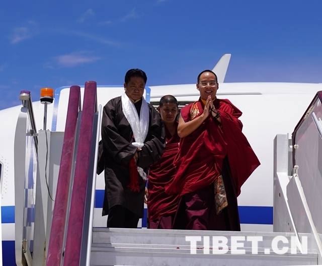 十一世班禪乘坐的飛機(jī)抵達(dá)拉薩貢嘎機(jī)場(chǎng)時(shí),西藏自治區(qū)黨委常委、統(tǒng)戰(zhàn)部部長(zhǎng)旦科站在歡迎隊(duì)伍最前面迎接,敬獻(xiàn)哈達(dá),握手致禮,表達(dá)西藏自治區(qū)黨委、政府的歡迎。