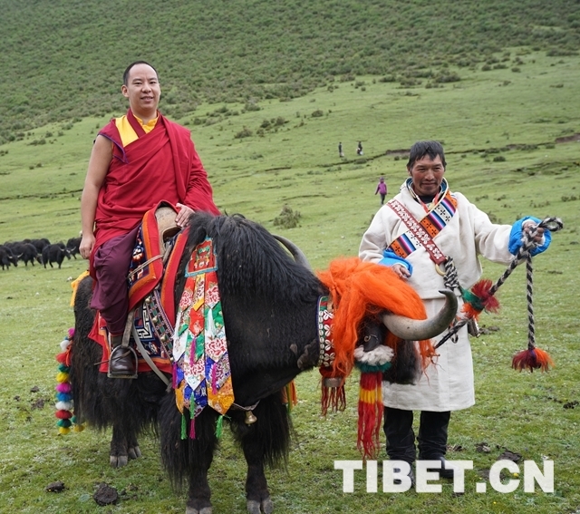 陽光雨露滋潤下,夏季的牧場上到處呈現(xiàn)出翠綠欲滴、生機勃勃的景致,鮮艷的野花與成群的牦牛更是給綠草如茵的牧場鑲嵌上靚麗的花邊。考察完雪林斯布牧場專業(yè)合作社后,十一世班禪一行來到放牧點,考察調(diào)研夏季牧場放牧點等情況。在這里,十一世班禪即興策馬徐行,展現(xiàn)出活力青春、風華正茂的一面。