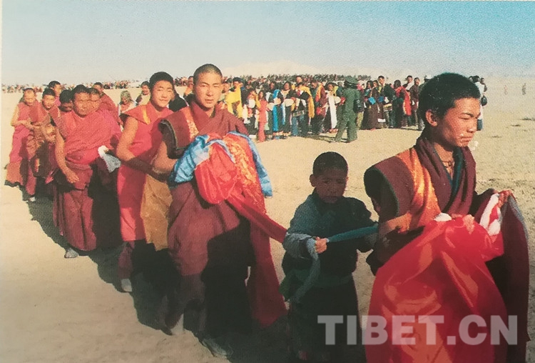 圖為十世班禪大師在幸福灘上誦經(jīng)祈禱,祝愿海南州昌隆、繁榮,各族人民幸福、吉祥。