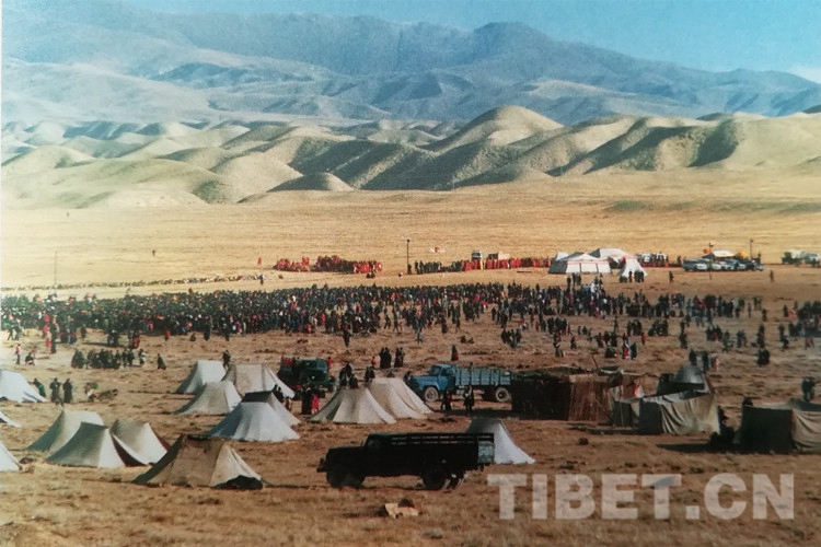 圖為渴盼得到十世班禪大師摩頂?shù)娜罕姳燃缃吁?,匯聚草場(chǎng),恭候那一幸福的時(shí)刻。