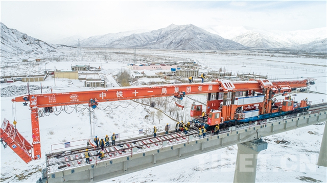 圖為中鐵十一局三公司鋪架人員緊張施工中