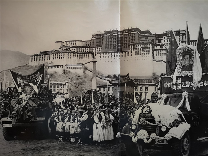 圖為人民解放軍進藏部隊勝利到達拉薩,各族人民夾道歡迎。翻拍:李元梅