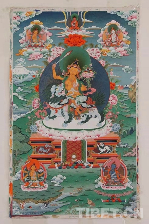 走進(jìn)曲扎的家,客廳一面白墻上并排掛著的四幅唐卡格外醒目,隱藏于作品背后的祖孫四代跨越一個(gè)多世紀(jì)的接續(xù)傳承,從他口中被娓娓道來(lái)。