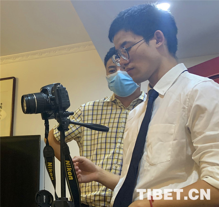 圖為中國西藏網(wǎng)記者調試錄播設備