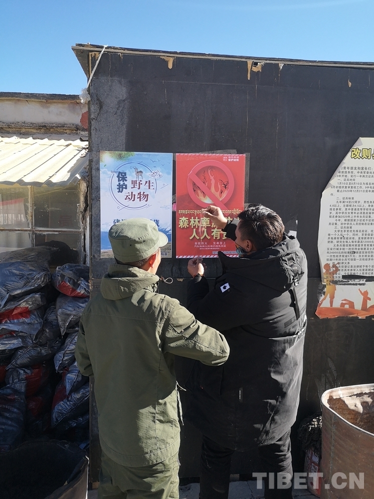 圖為改則縣林業(yè)和草原局巡護人員粘貼宣傳海報