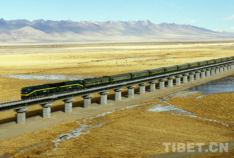 乘坐“天路”列車,通過藏北高原時,我喜歡從車窗遠望。因為這片鐵路依傍著青藏公路的廣袤高原草甸地區(qū),不僅能看見藏羚羊、藏原羚、藏野驢等野生動物;還能看到清水河、楚瑪爾河、秀水河、長江源等江河上的特大橋。這些蜿蜒而上的特大橋以橋代路,在很好地保護凍土和草原綠地的同時,也為藏羚羊等野生動物在這一帶棲息和遷徙提供了保障通道。