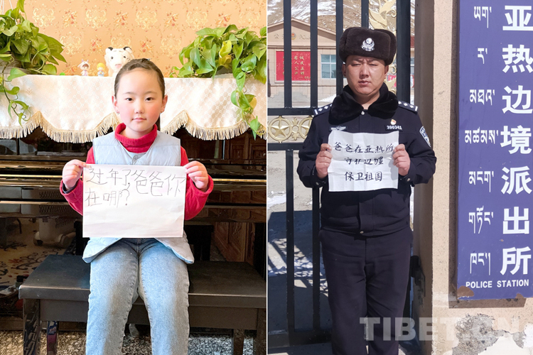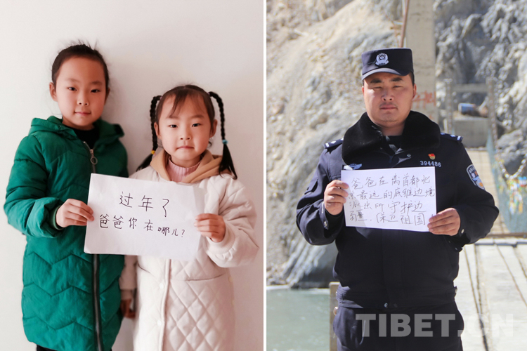 這是一張拼版照片,小女孩名叫旦增諾央,今年8歲,到現(xiàn)在還沒有和爸爸一起過過年。爸爸旦增尼瑪是日喀則邊境管理支隊(duì)亞熱邊境派出所所長,春節(jié)將至,他和戰(zhàn)友們堅(jiān)守在海拔5300多米的中尼邊境一線,他通過這種方式表達(dá)對(duì)孩子的思念,相信慢慢長大的孩子一定能夠理解自己。