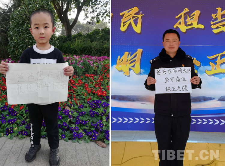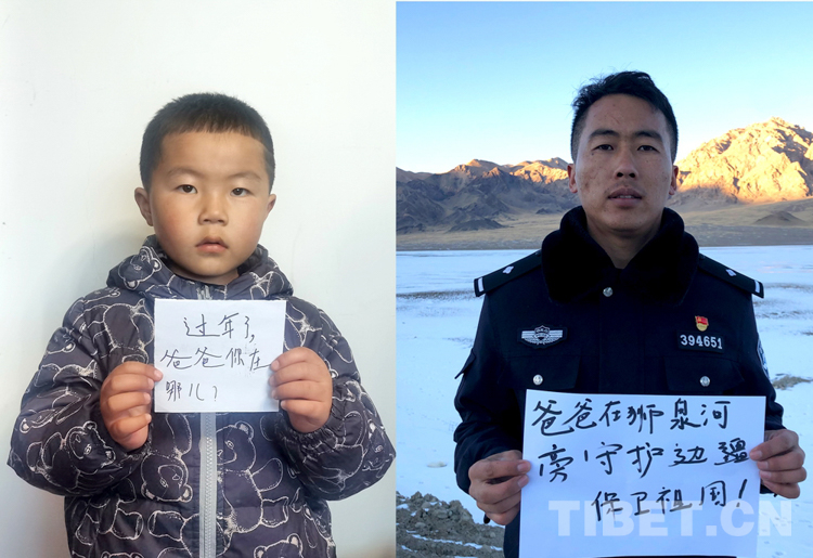 這是一張拼版照片,孩子名叫平措扎西,今年5歲,3年沒和爸爸一起過年了,今年和媽媽在日喀則過年。爸爸格瑪次仁是西藏出入境邊防檢查站阿里邊境管理支隊(duì)扎西崗邊境派出所民警,新春將至,他和他的戰(zhàn)友堅(jiān)守在海拔4400米、位于獅泉河下游的典角村,默默守護(hù)著邊境一線的安全穩(wěn)定。