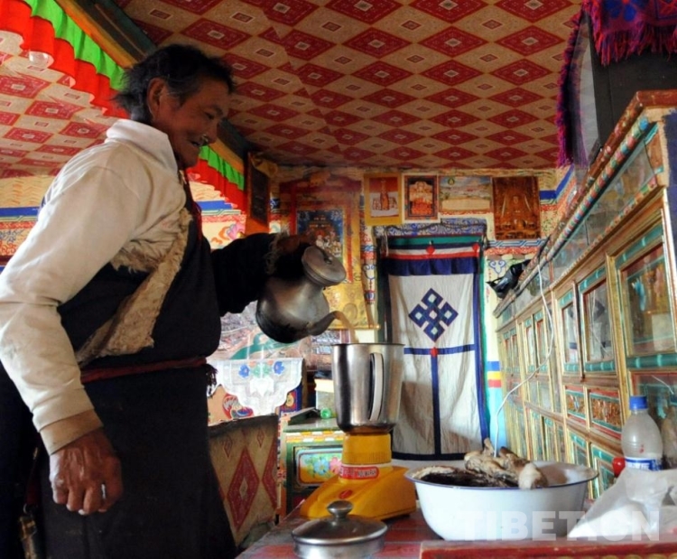 在藏北草原上,走進(jìn)任何一頂帳篷或是一間房屋,總會(huì)見到兩樣不可或缺的東西——一包包磚茶和一袋袋糧食。