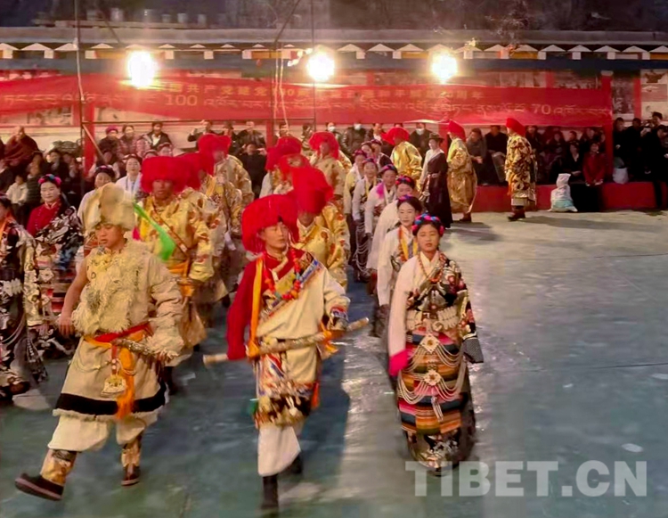 安麥西村民集體歌唱的《出征》,讓人們回想起當(dāng)年安麥西15勇士為保衛(wèi)幸福家園,保護(hù)金珠瑪米,英勇同叛軍進(jìn)行殊死斗爭前視死如歸、團(tuán)結(jié)一心的動(dòng)人場景,將整場演出進(jìn)一步推向了高潮。演出活動(dòng)在這歌舞聲中接近尾聲,在場的演員群眾手捧哈達(dá)高呼:“永遠(yuǎn)感黨恩、聽黨話、跟黨走,團(tuán)結(jié)奮斗,創(chuàng)造我們更加幸福美好的新生活!”(中國西藏網(wǎng) 通訊員/蔡生萬)