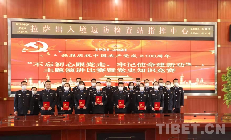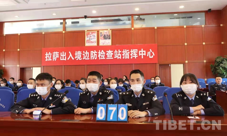 中國西藏網(wǎng)訊 近日,拉薩出入境邊防檢查站舉辦“不忘初心跟黨走、牢記使命建新功”主題演講比賽暨黨史知識競賽。此次知識競賽重在以賽促學(xué)、以學(xué)促行,競賽內(nèi)容緊緊圍繞黨史學(xué)習(xí)教育知識點,引導(dǎo)廣大黨員民警親歷了一場生動的思想“洗禮”。圖為知識競賽活動現(xiàn)場。(中國西藏網(wǎng) 通訊員/高揚 記者/ 賈華加)