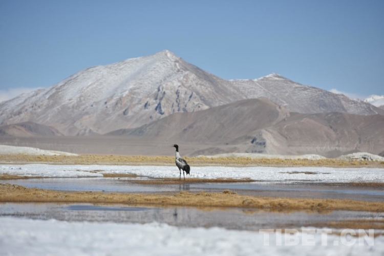 圖為2021年4月拍攝的阿里地區(qū)改則縣境內(nèi)的黑頸鶴 攝影:王媛媛