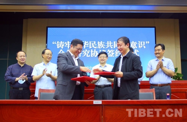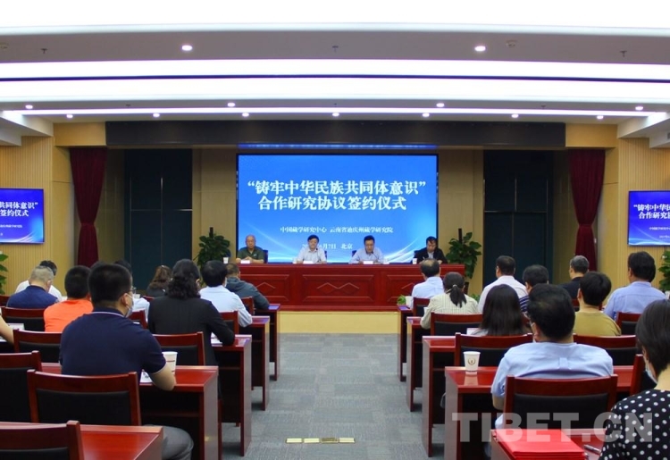 中國(guó)西藏網(wǎng)訊 6月7日,中國(guó)藏學(xué)研究中心與云南省迪慶州藏學(xué)研究院(迪慶州鑄牢中華民族共同體意識(shí)研究教育實(shí)踐中心)合作開(kāi)展“鑄牢中華民族共同體意識(shí)”研究協(xié)議簽約儀式在北京舉行。中國(guó)藏學(xué)研究中心黨組書(shū)記陳宗榮、迪慶州藏學(xué)研究院黨組書(shū)記和樹(shù)軍分別致辭。中國(guó)藏學(xué)研究中心總干事鄭堆主持儀式,簽約雙方相關(guān)部門(mén)負(fù)責(zé)人及部分專家學(xué)者參加了儀式。